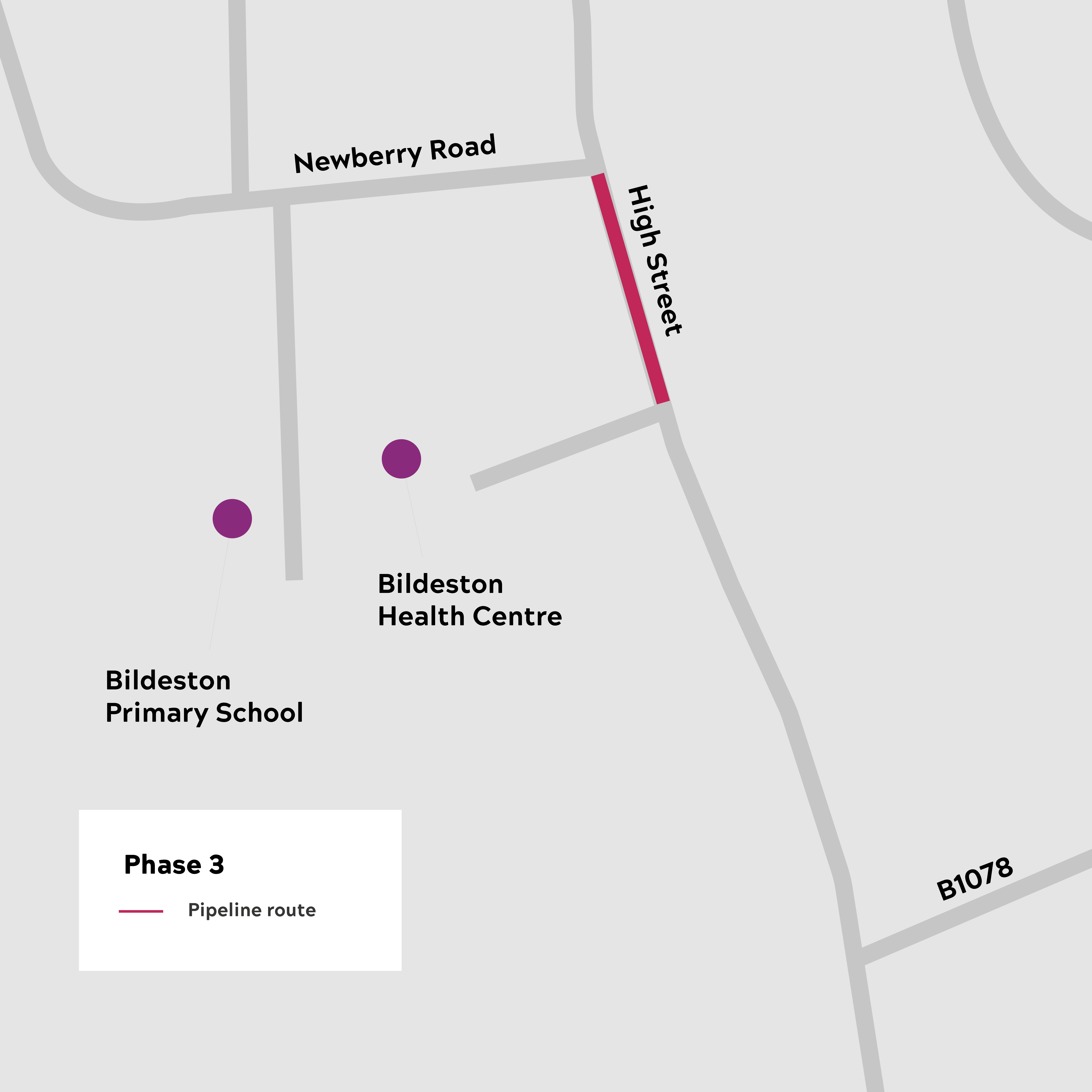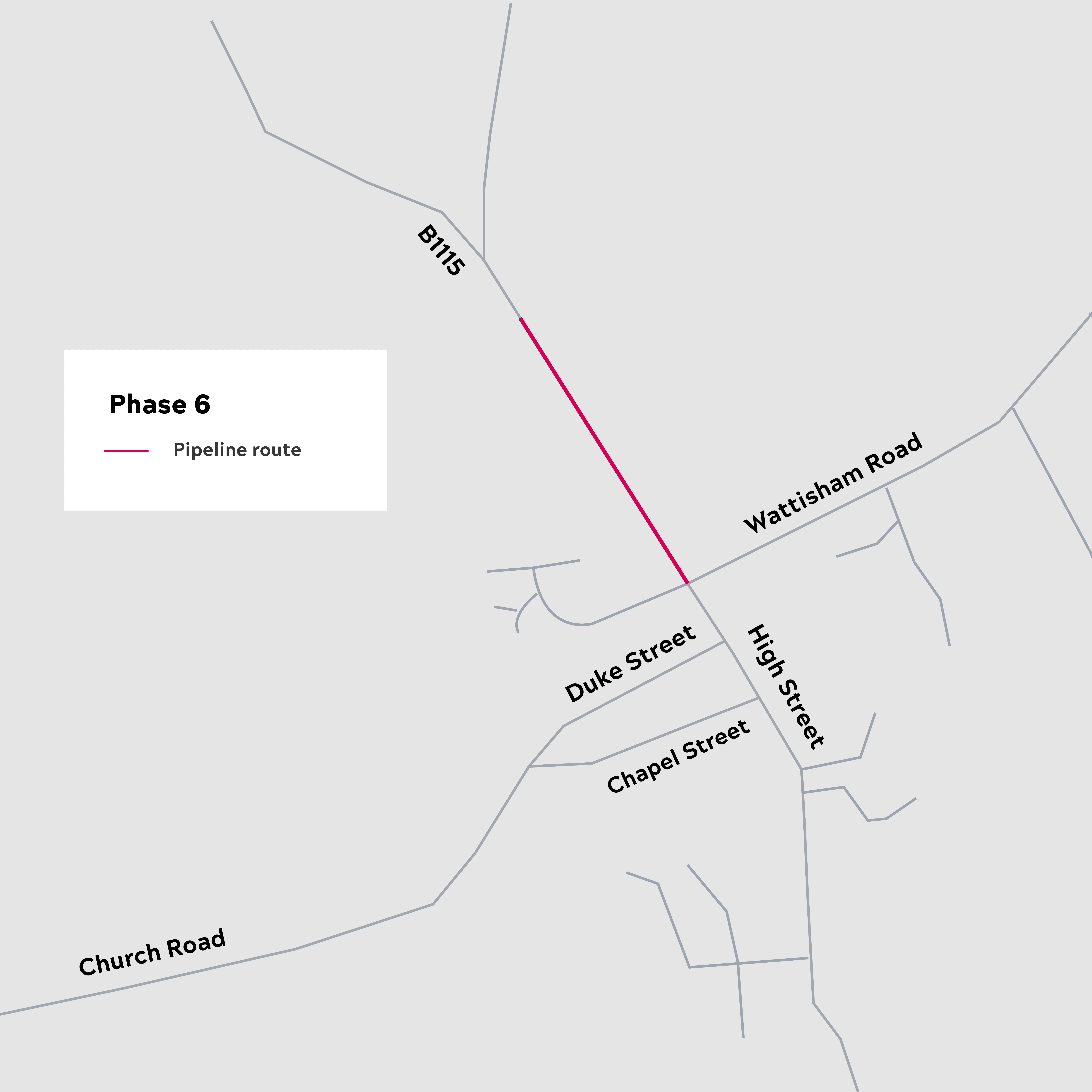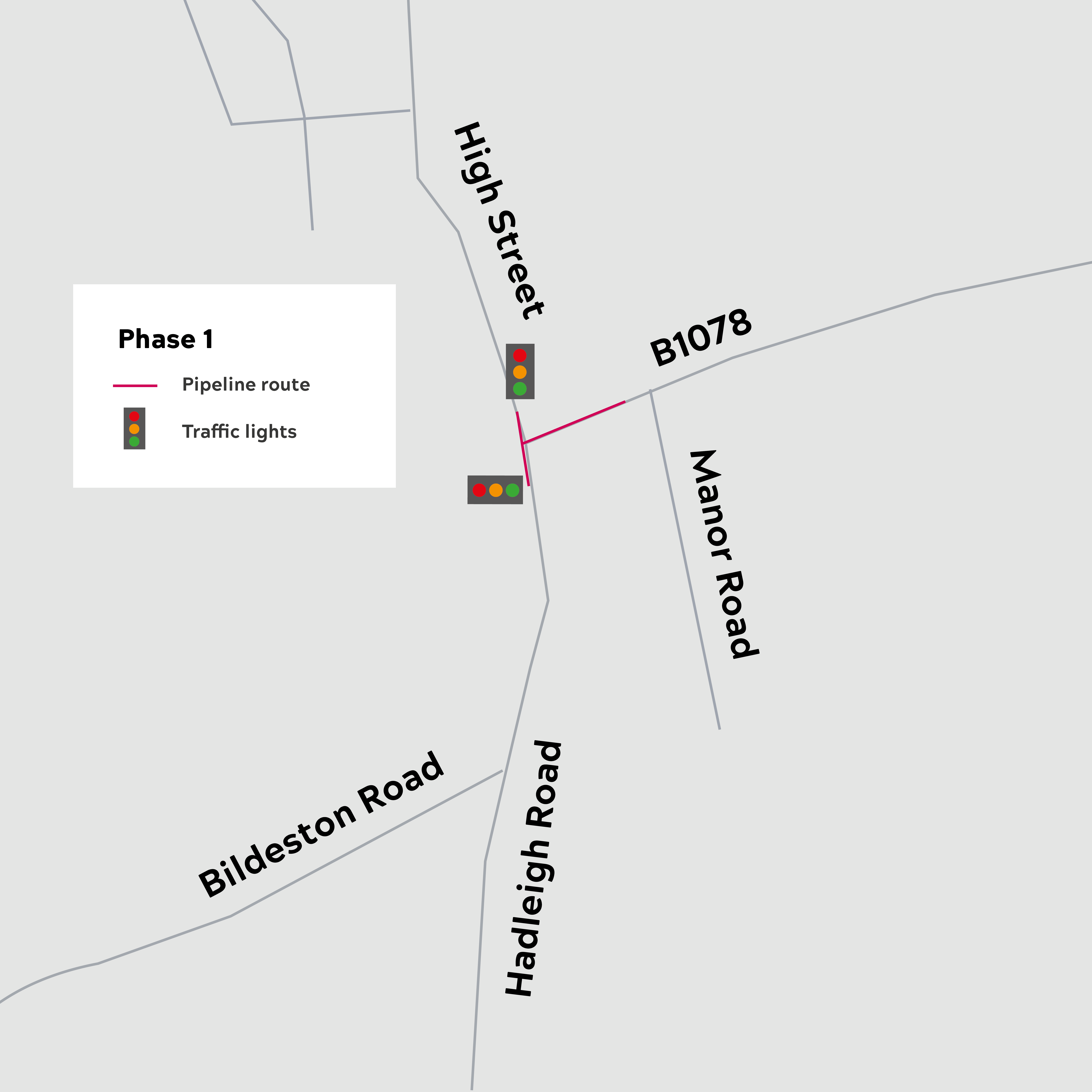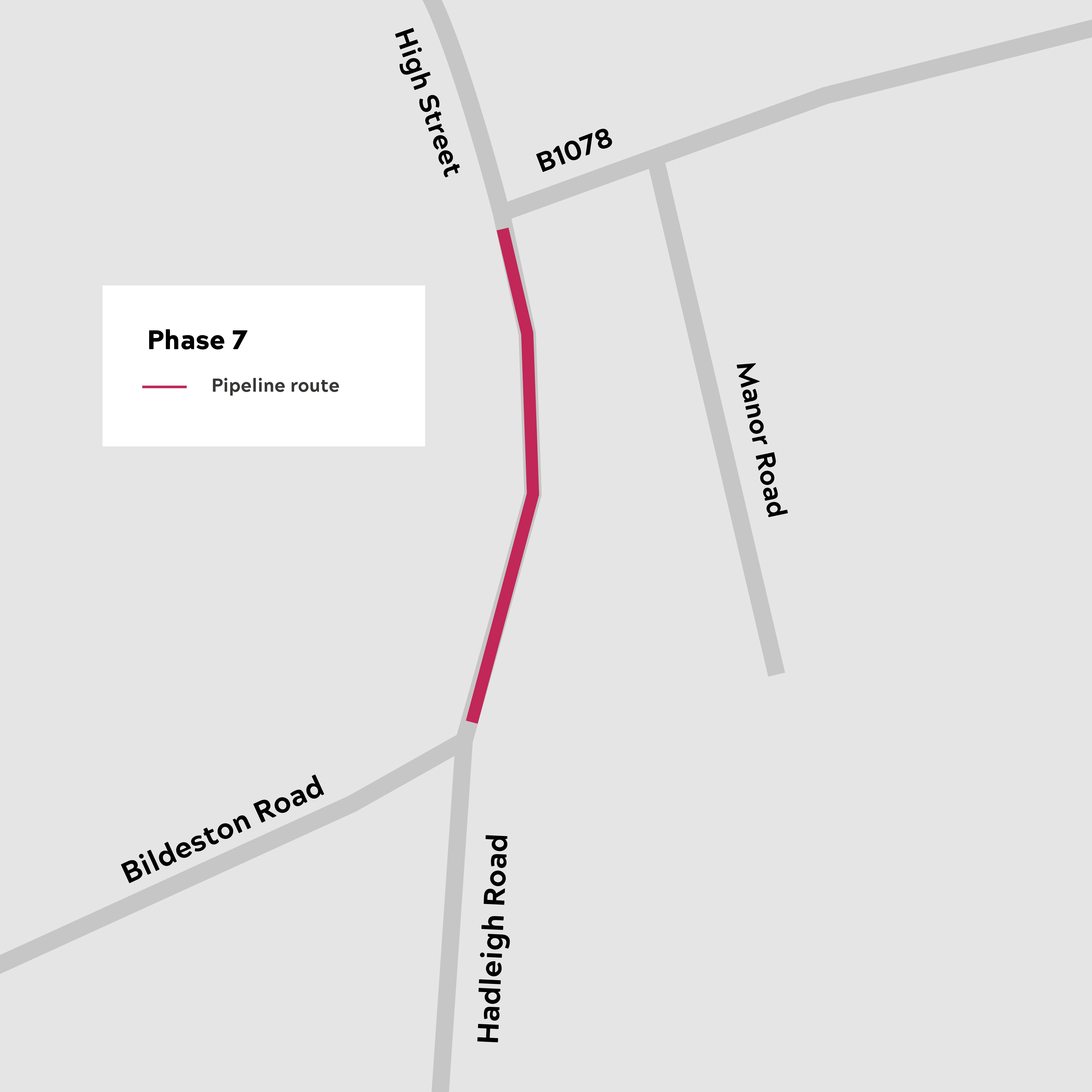 Our new pipes will be installed underground along High Street. The pipeline will start from the Ipswich Road junction and will carry on up the High Street until the end of the village. We’ll start installing the new pipes on 22 June, and if everything goes smoothly, we’ll be finished in November.