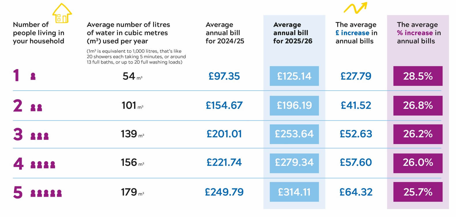 So, you can understand what these changes to our charges might mean for you, the table below shows the average increase to annual bills for customers on our Standard Tariff with a meter, including all fixed charges.